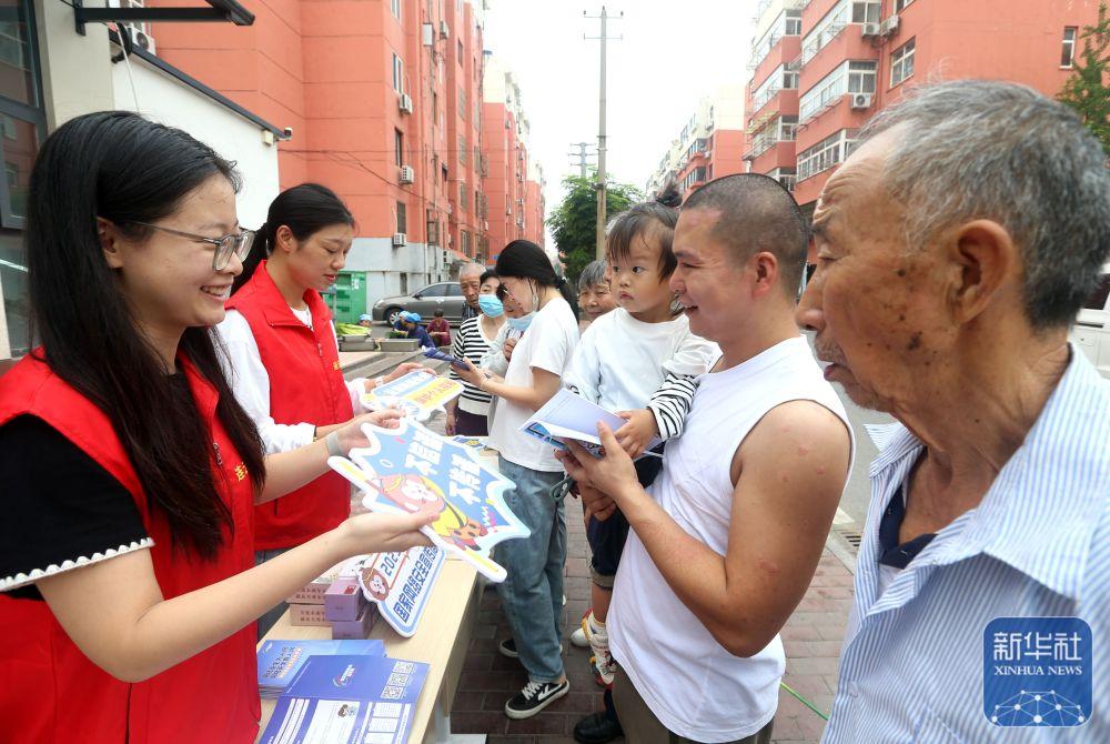 9月15日,江苏省连云港市连云区委网信办工作人员给连云区西园社区居民宣传网络安全知识。新华社发(王春摄)
