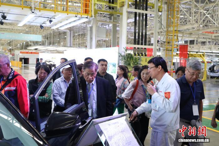 9月15日,北美洲台湾乡亲联谊会新疆参访团在乌鲁木齐市一家汽车制造企业参访。苟继鹏 摄