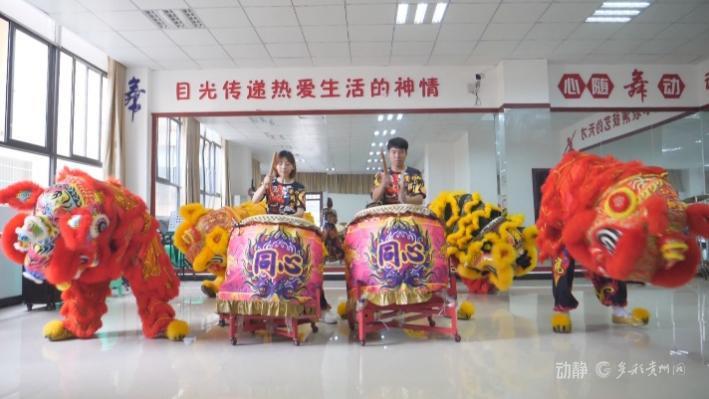 锣鼓声响,狮头猛扬。5年前,来自台湾宜兰的赖翊凡跟随妻子来到贵州,在绥阳组建了一支“台湾同心龙狮战鼓队”,每天下午两点是队员们训练的时间。