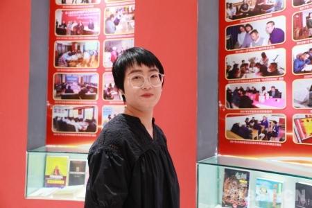 图为李婧梅在向记者介绍自己的研究作品 摄影:张艺彤