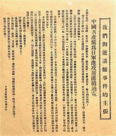 图为《中国共产党为日军进攻卢沟桥通电》。来源:人民日报