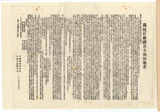 1935年8月1日,《中国苏维埃政府、中国共产党中央为抗日救国告全体同胞书》。来源:中国档案杂志