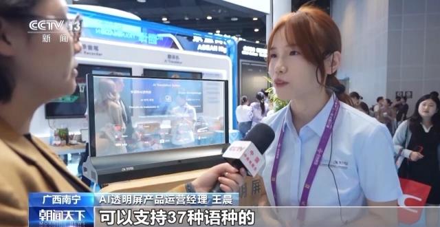 AI透明屏产品运营经理 王晨:可以支持37种语种,它主要是为一些公共服务的窗口,比如说像机场,酒店,因为会有很多的外国游客,就可以完美地去解决沟通的问题。