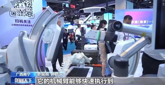 记者注意到,展馆里高科技消费产品的人气格外高。一款集成显示、摄像和AI翻译的智能眼镜,针对东盟多语种环境优化了算法,支持印尼语、泰语等互译。而在另一侧,骨科手术机器人展台也同样吸引了众多关注。