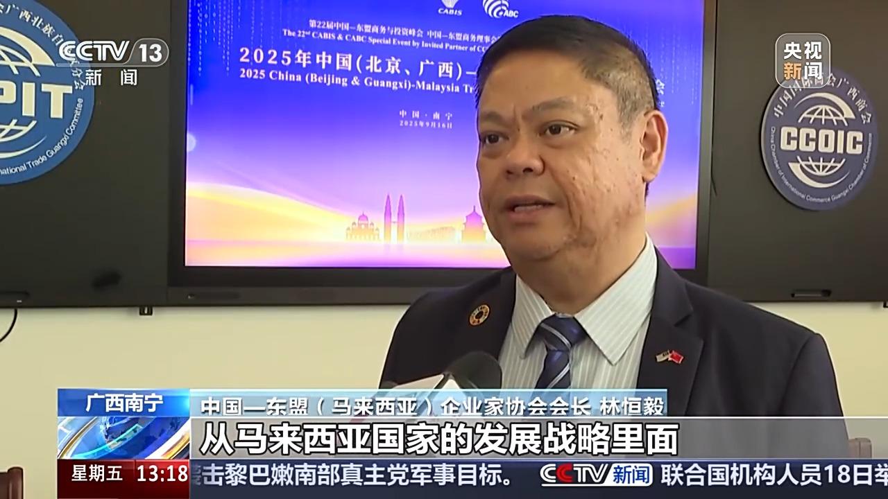 中国—东盟(马来西亚)企业家协会会长 林恒毅:从马来西亚国家的发展战略里面,绿色经济是很重要的一环。中国有着许多的这种良好的技术和成熟的技术,其实就是希望能够把这些成熟的技术带来发展中国家,让我们大家能够共享、共建和共创。