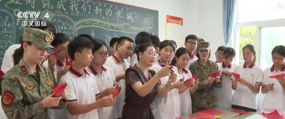 在湖北、重庆等地,担负军训任务的部队官兵将军事训练和国防教育有机结合,通过多场景、互动式教学,给学生们讲述抗战故事、体验军事训练。