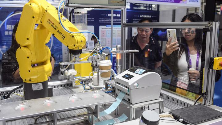 2025年9月19日,在广西南宁国际会展中心,机器人在制作饮品。新华社记者 张爱林 摄
