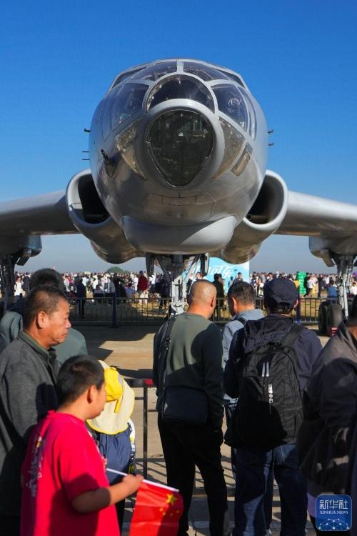 ↑ 9月20日,观众在现场参观轰-6飞机。