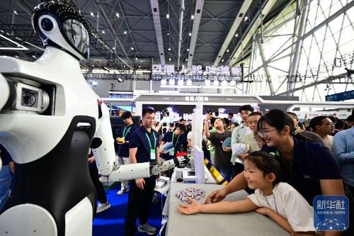 ↑ 9月20日,小朋友在2025世界制造业大会上与一款智能机器人互动。新华社记者 黄博涵 摄