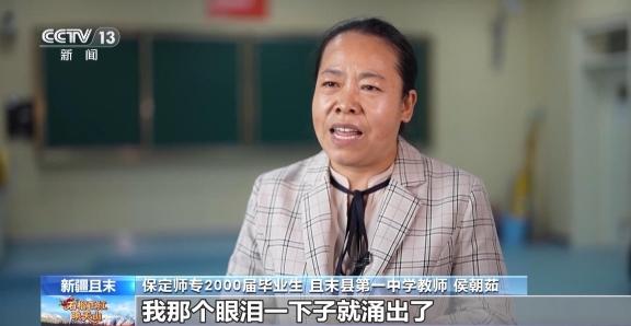 保定师专2000届毕业生、且末县第一中学教师 侯朝茹:信中有句话说你们的事迹令人感动,其实我看到这里的时候,眼泪一下子就涌出了。