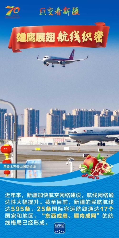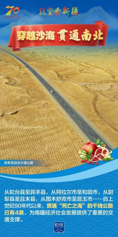 今年是新疆维吾尔自治区成立70周年。70年来,新疆的交通建设日新月异。从驼铃声声、马蹄嘚嘚到铁流纵横、银鹰高翔,一座座交通枢纽辐射四方,一条条“钢铁巨龙”蜿蜒逶迤,一个个支线机场星罗棋布,现代化的新疆立体交通网络日益形成。让我们跟随这组海报,一起见证穿越“三山两盆”、贯通欧亚大陆的新时代新疆交通画卷。