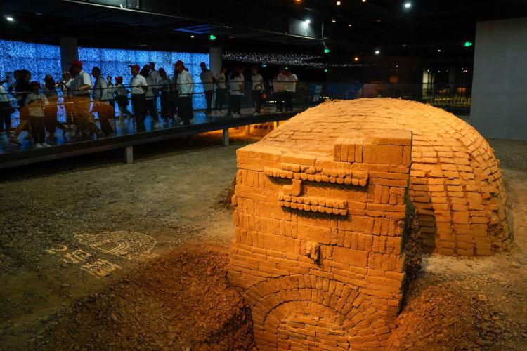 而在地上,龟兹博物馆也于今年面向游客免费开放。龟兹博物馆馆长马丽丽介绍:“为让馆藏文物活起来,地上、地下两馆相依,既以丰富馆藏铺展龟兹文化长卷,又将库车友谊路墓群的历史肌理原真呈现。”
