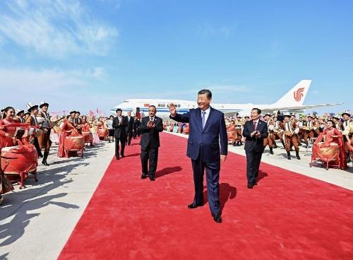 9月23日,中共中央总书记、国家主席、中央军委主席习近平率中央代表团抵达乌鲁木齐,出席新疆维吾尔自治区成立70周年庆祝活动。