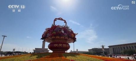 为迎接国庆,北京天安门广场及长安街沿线花卉景观布置基本就绪。9月25日,天安门广场中心花坛盛装亮相。今年广场花卉布置以“奋进新征程,建功新时代”为主题,中心花坛顶高18米。以高16米、直径12米的“祝福祖国”巨型花篮为主景。其中,加大了鸢尾、翠菊、珙桐、橄榄枝等新型花材的使用。此外,还有寓意和美的荷花、以及寓意奋进的山丹丹等花卉,表达美好祝愿。