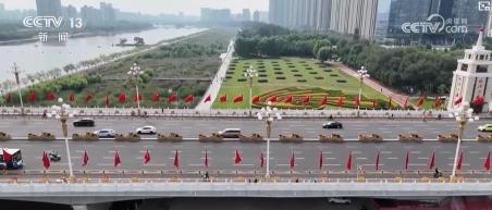 在山西省太原市,大街小巷喜气洋洋,主要街道两旁整齐悬挂起鲜艳的五星红旗,一抹抹中国红成为街头最亮眼的风景。