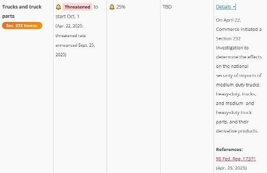 美国里德·史密斯贸易团队跟踪最新关税图表(重型卡车)