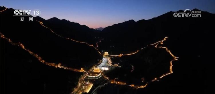 而在居庸关长城景区,已经提前开启了“夜游”模式。云台、城楼被依次点亮,夜幕下的居庸关长城宛如一条金色巨龙横亘于山脊之上,“天下第一雄关”的巍峨磅礴气势跃然眼前。