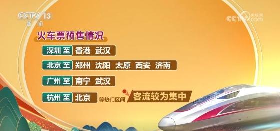 截至9月28日8时,铁路12306已累计售出国庆中秋假期运输期间(9月29日至10月8日)车票超9000万张。从火车票预售情况来看,国庆中秋假期运输热门出发城市主要有北京、广州、杭州、上海、深圳、成都、武汉、郑州、南京、西安;热门到达城市主要有北京、上海、广州、成都、郑州、武汉、杭州、南京、长沙、西安;深圳至香港、武汉,北京至郑州、沈阳、太原、西安、济南,广州至南宁、武汉,杭州至北京等热门区间客流较为集中。