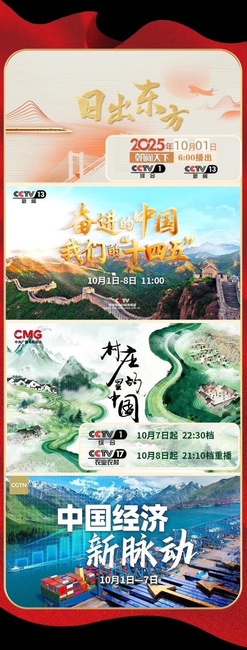 金秋泼彩山河醉,家国同辉气象新。10月1日晚八点,《中国梦•家国情——2025国庆特别节目》将在《我爱你中国》的大合唱中拉开大幕。特别节目走进城市地标与文化遗址,展现山河新貌与奋斗者群像。经典曲目、交响合唱、新创歌曲传递浓浓家国情怀。抗战老兵、奥运冠军、各行各业奋斗者深情讲述……整场节目,洋溢着中华民族伟大复兴势不可挡的壮志豪情。