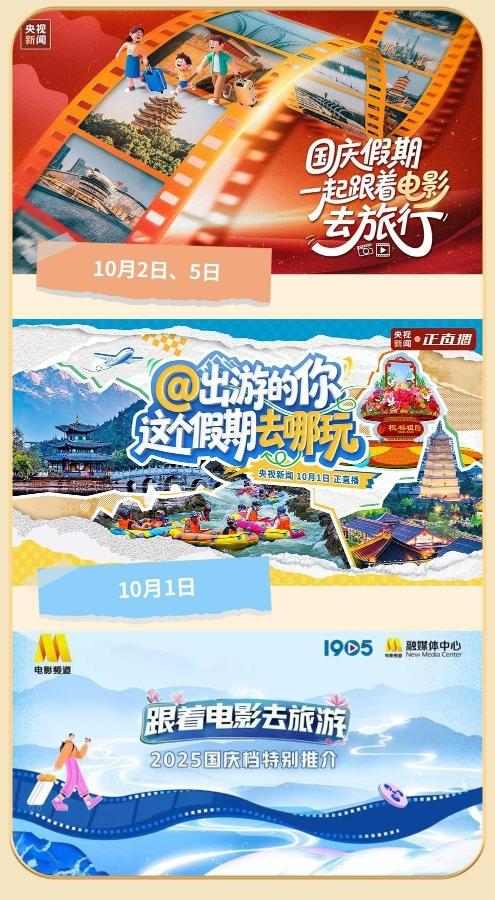 《国庆假期 一起跟着电影去旅行》《@出游的你 这个假期去哪玩?》还为大家策划了第七站、第八站……准备好出发了吗?