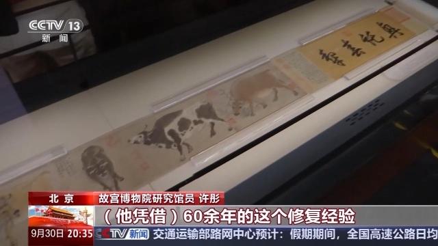 故宫博物院研究馆员 许彤:它上面大小破洞应该有300多处,非常残破。后来,修复专家孙承枝老师凭借其60余年的修复经验,通过揭裱、修补、全色又重装,最终让国宝重光,获得新生。