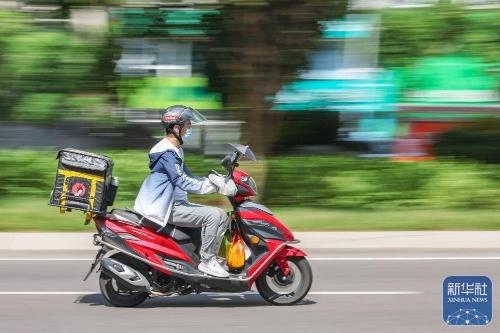 ↑10月1日,在重庆市渝北区,一名外卖小哥在辛勤工作。新华社记者 黄伟 摄