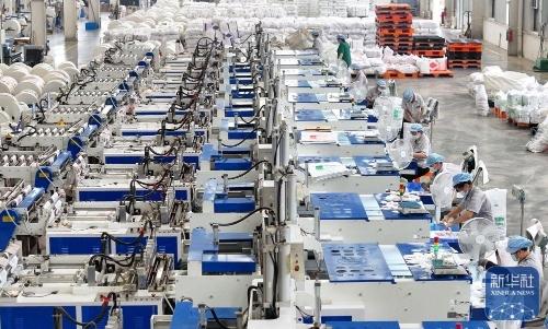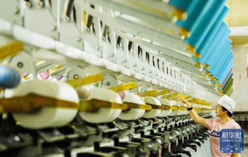 ↑10月1日,工人在河北省遵化市高强化纤有限公司车间工作。新华社发(刘满仓摄)
