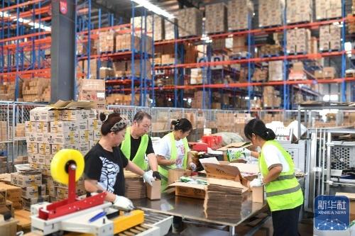 ↑10月1日,山东省青岛市城阳区夏庄街道青岛鲜美鲜到供应链管理有限公司仓库拣货员在拣选货物。新华社发(王海滨摄)