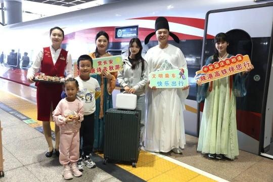 本次活动紧扣国庆“家国情怀”与中秋“团圆思念”的双重意蕴,结合西安打造“唐诗之都”的文化实践,将周秦汉唐文脉与诗词意境融入旅途,让旅客在飞驰的列车上既能感受节日温情,又能沉浸式体验中华传统文化的魅力。