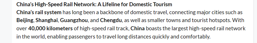 高铁网络是旅游业生命线