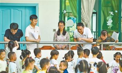江西丰城市梅林镇的党员干部和政协委员就“一老一小”民生服务保障情况在梅林镇中心幼儿园走访调研。周亮摄(人民视觉)