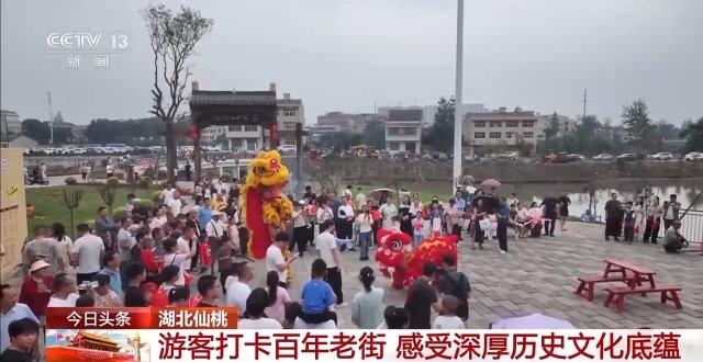 国庆假期,在湖北仙桃干河街道袁市村的百年古墙边,游客围成一圈观看舞狮表演,小朋友热情地伸出手抚摸狮头、亲密互动;吊脚楼上,老街村民和游客齐声合唱《歌唱祖国》,表达对祖国的热爱;现场的魔术和杂技等演出还吸引了国外的游客前来体验,游客在热闹氛围中沉浸式感受假日活力和中国的传统文化。