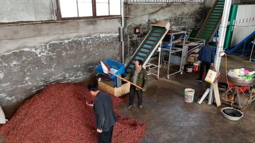 陕西省铜川市耀州区的大红袍花椒已进入盛采期,椒农们忙着装筐、过磅,一筐筐鲜椒被运往烘干中心,24小时内便可完成分级、包装。