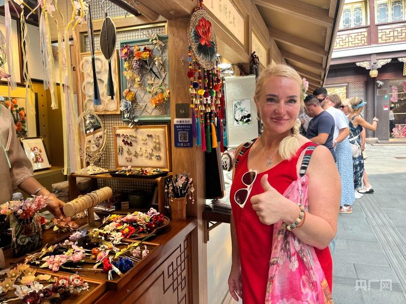 除了时尚消费的多元选择,上海的特色消费更从“传统好物”延伸至“科技潮品”,在满足不同需求的同时,也向境外游客传递着中国文化的温度与现代生活的便利。“我买了很多中国茶叶,买了玉手串。我还买了各种丝绸制品,有漂亮的裙子、丝巾,还有一条可以和妈妈一起使用的丝绸毯子。”俄罗斯游客艾琳娜的行李箱里,装满了颇具中国风的优质商品,这些都是她眼中“最有中国味道的伴手礼”。