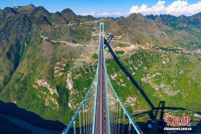 中新社贵州贞丰10月6日电 今年国庆中秋假期,刚于9月底通车的贵州花江峡谷大桥成为当地热门打卡地。