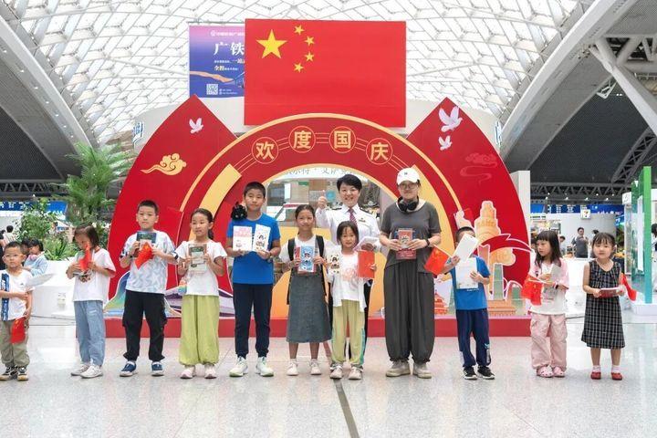 10月1日,广州南站在三层候车厅组织开展欢度国庆暨“文明出行·书香广南”快闪活动。广州南站职工初心艺术团成员带来快闪表演《坐着高铁看中国》,并与旅客共唱《我和我的祖国》,共同祝福祖国繁荣昌盛!