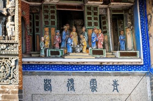 这是9月13日在塱头村积墨楼拍摄的灰塑装饰。