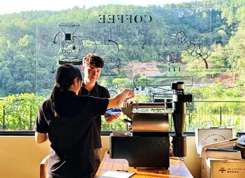 2025年9月20日,云南省普洱市南屏镇南岛河村“美丽星村·有风咖谷”咖啡体验中心的工作人员在烘焙咖啡豆。因普洱茶享誉海内外的普洱市依托丰富的咖啡资源和独特的咖啡文化,积极推进咖啡与旅游的深度融合,打造了咖啡庄园、咖啡主题街区和咖啡文化集市等多元体验场景,受到游客青睐。近年来,云南凭借得天独厚的咖啡种植优势和文旅资源,通过科技赋能、精品化转型、业态创新、集群发展和文化注入,逐步实现“咖啡+文旅”产业链各环节价值提升。