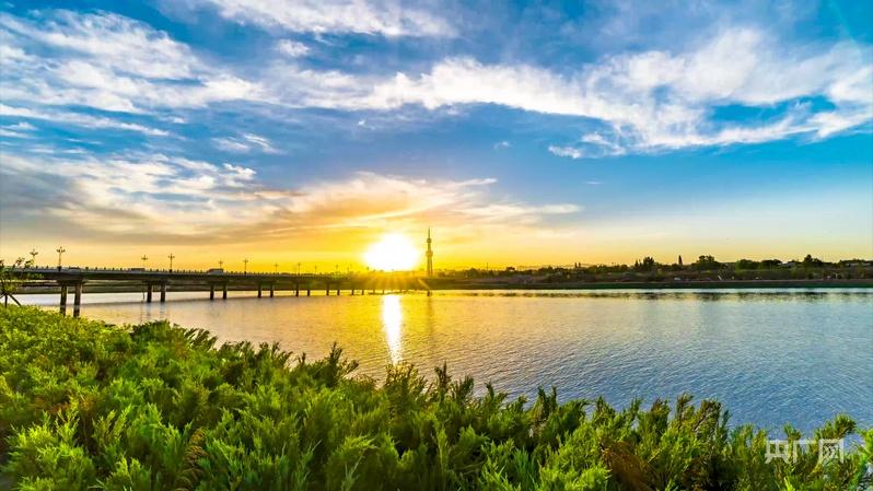 新绛汾河生态公园风景如画(央广网记者 张洁 摄)