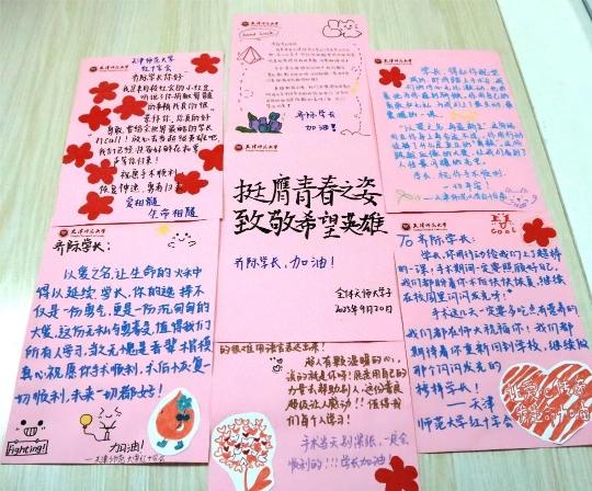 同学们以信件的方式为齐际加油鼓劲(央广网发 天津师范大学供图)