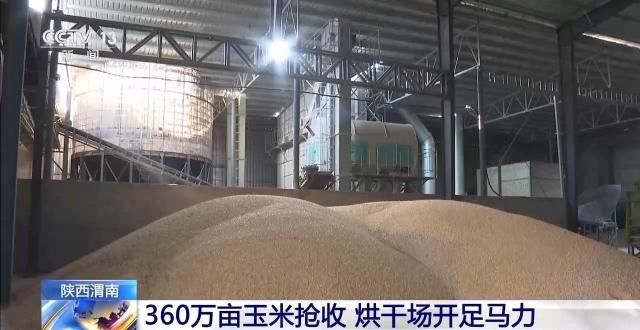 今年秋收期间,陕西渭南出现了连阴雨天气,给玉米收割与晾晒带来较大困难。当地在天气转晴的时候加紧收割,同时,烘干厂也开足马力,全力保障秋粮抢收。