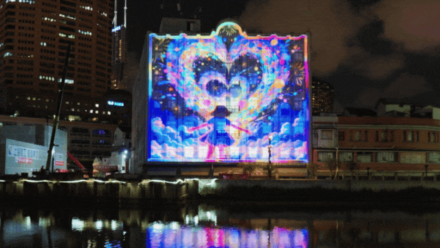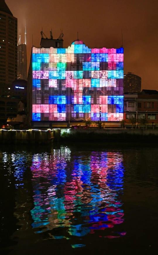 苏河湾亲水平台化身“苏河光映厅”,通过《光染画境》与《光之漂流》这两场主题各异又一脉相承的建筑联动光影秀,串联起对“家园”的诗意解读。