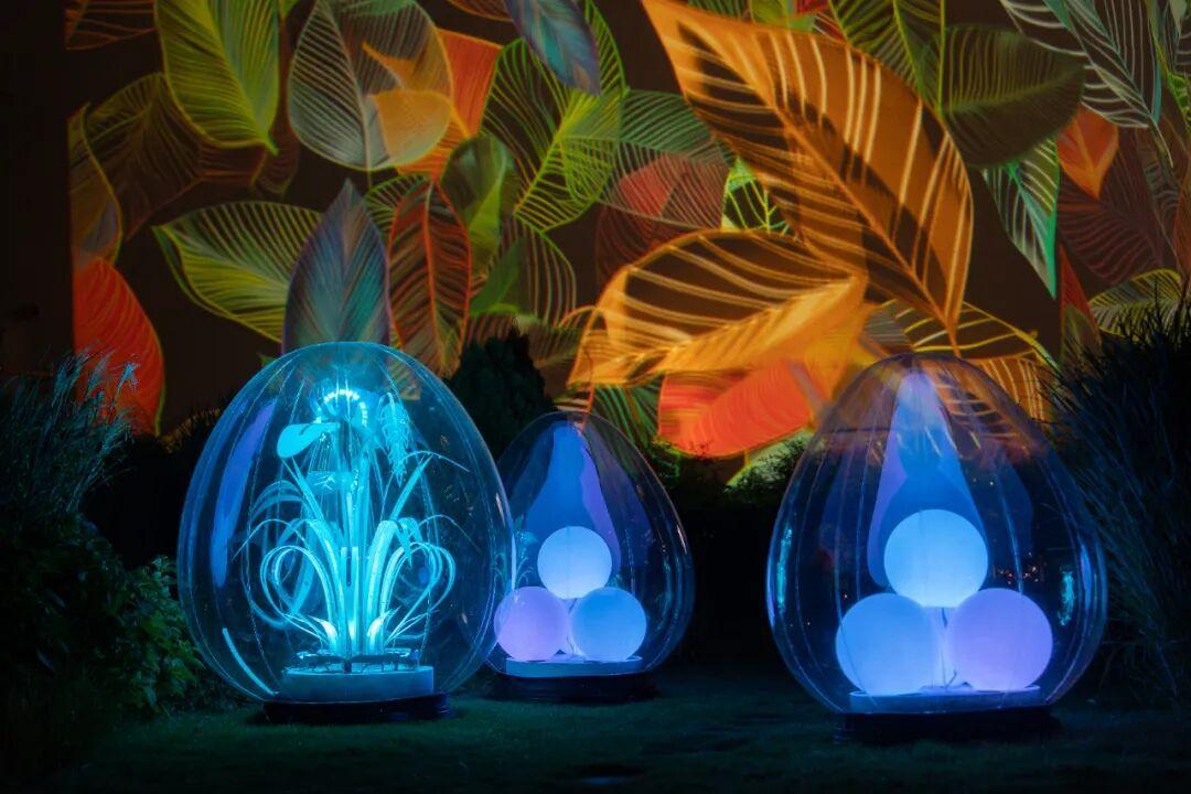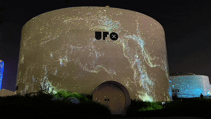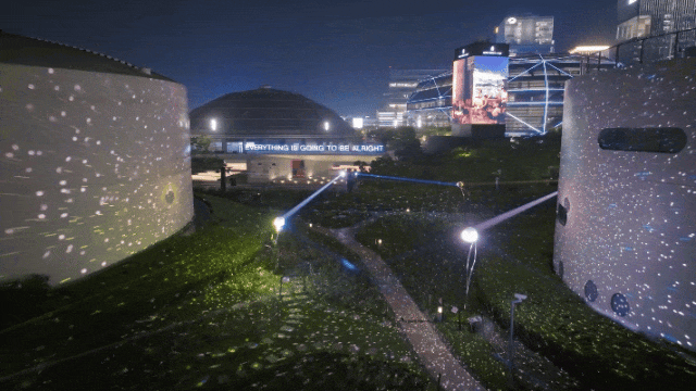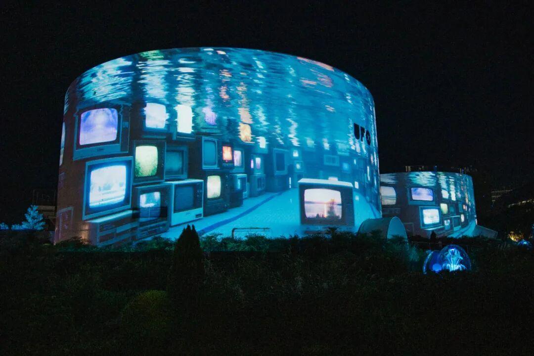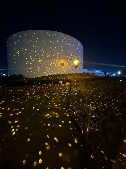 以油罐造型呼应“茧房”形态,用国际光影mapping内容与植物呼吸气模共筑“夜间赛博自然”,树立“人与自然双向奔赴”的光影典范。
