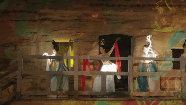 城市空间中空悬的“敦煌光影石窟”还原敦煌壁画的细腻笔触与恢弘意境,构建集观赏、体验、互动于一体的国风光影综合体。光影灵动,《丝路光影》以数字重现敦煌壁画的千年古韵;飞天翩跹,《乐舞妙音》复刻古丝绸之路的乐舞风情。