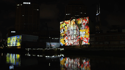 在苏州河畔苏河光映厅,以光影“重生”岭南画派艺术大作,一幅幅色彩鲜艳、生机勃勃的“水墨花园” 倒映在温婉的潺潺流水上,海派的万千气象与岭南的“折衷中外、融汇古今”精神在此得以贯通呈现。