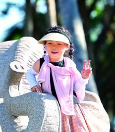 国庆中秋假期,家长带着孩子在海南三亚南山文化旅游区游玩。新华社发