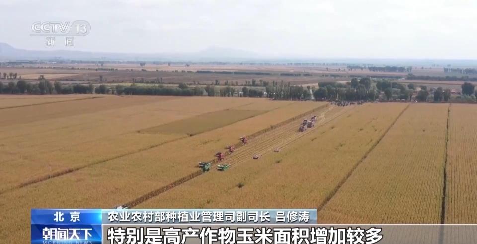 农业农村部种植业管理司副司长 吕修涛:今年我国秋粮面积稳中略增,特别是高产作物玉米面积增加较多,粮油作物大面积单产提升行动效果显著。从全国范围看,秋粮收获进度总体正常。