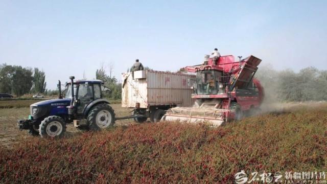 9月3日,新疆新研牧神科技有限公司自走式辣椒收获机在焉耆回族自治县进行辣椒收获作业。周叙杰 摄