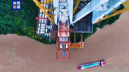 渝万高铁石沱长江大桥首节钢梁成功架设