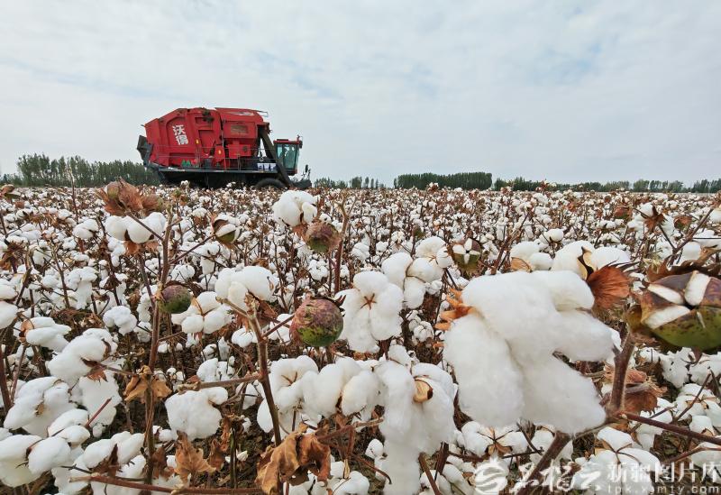 正值收获季节,采棉机驰骋在原野上,采下挂在枝头的朵朵棉花,“吐”出一个个洁白的棉花包。这一丰收场景如同“十四五”期间新疆的发展——以规划为蓝图、以项目为良种、以创新为耕耘,在天山南北播下希望、收获成就。